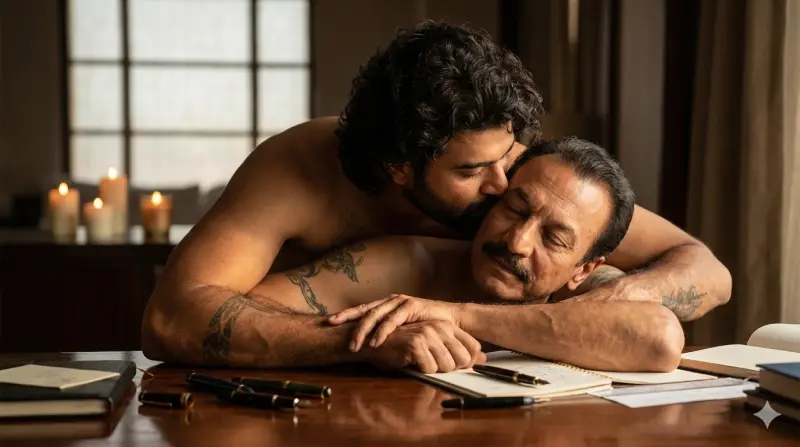 நிகில் கணேசனின் கை விரல்களை மெதுவாக கோர்த்துக்கொண்டான். நிகில் அவர் தோளில் தன் மூக்கை இழைத்தபடி “கணேசன்… காலையில இருந்து சாப்பிடலையாமே… வாங்க போய் சாப்பிடலாம்” என்று அவரை அழைத்தாலும், அவனுக்கு அவரோடு அங்கு தனிமையில் இருக்கவேண்டும் என்று தான் தோன்றியது. கணேசன் இன்னும் தரையை பார்த்துக்கொண்டிருக்கிறார். நிகில் தன் குழைவான குரலில் லேசான கடுப்பையும் கலந்து “கணேசன்.. ஏன் இப்படி உங்களை வருத்திக்கிறீங்க? நான் மட்டும் நிம்மதியா இருக்கேன்னு நினைக்கிறீங்களா? நீங்க இப்படி distance maintain பண்றது எனக்கு பைத்தியம் பிடிக்கிற மாதிரி இருக்கு… இப்போ தான் office-ல ஒரு major account-ஐ தொலைச்சிட்டு வந்திருக்கேன்.” கணேசன் நிமிர்ந்தார். கணேசன் “I am sorry for that நிகில்! உனக்காச்சும் அந்த account-ஐ திரும்ப மீட்டுக்கலாம்… ஆனா நான் பண்ணி வச்சிருக்குற காரியத்துக்கு எல்லாத்தையும் இழந்துட்டு நிக்கிறேன்…” என்று விசும்பினார். நிகில் அவருக்கு ஆறுதலாக தோளை சுற்றி கைப்போட்டான். கணேசன் “மகனா நினைக்க வேண்டிய உன்னை நான் வேற மாதிரி ஆக்கிக்கிட்டு… சரி! முதல் தடவை நடந்தது அசம்பாவிதம்னு ஒதுங்கி இருக்கலாம்… அடுத்த தடவை புத்தி இல்லைன்னு விட்டிருக்கலாம்… ஆனா Hobart private trip-க்கு அப்புறம் எனக்கு உன் மேலே கிறுக்கு பிடிச்சிடுச்சு… என் பொண்ணோட வாழ்க்கையை, அவளோட படுக்கையையே பங்கு போட்டிட்டிருக்கேன்னு நினைக்கிறப்போ எனக்கு ஏன் உயிரோட இருக்கனும்னு தோணுது… பேசாம நான் செத்துப்போ…” நிகில் கணேசனை மேலே பேசவிடாமல் அவர் உதட்டை கவ்வி வாயை அடைத்தான்.